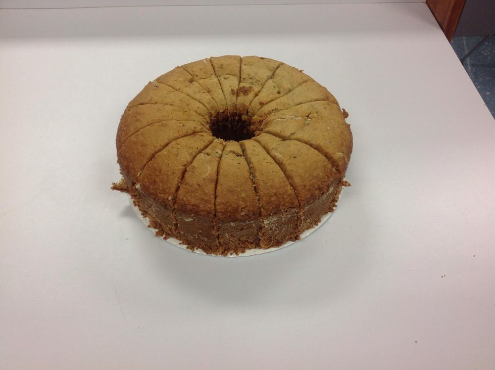 Put all ingredients besides bananas and nuts in mixer and mix.