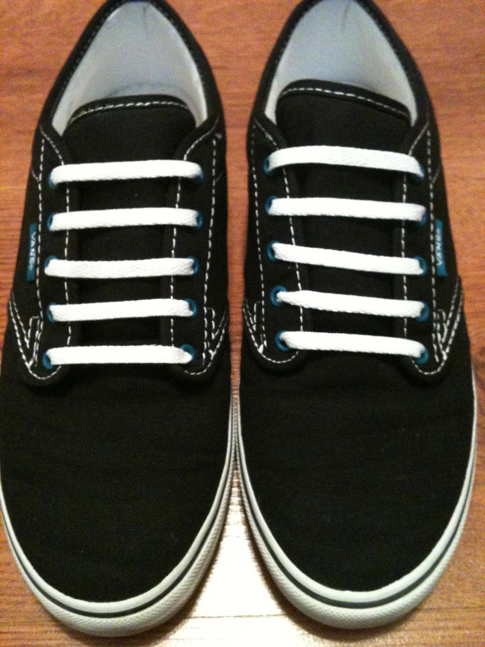 Pull it trough the top of the last hole left and you have tied your shoelaces into bars! 😃 If you have more hole than I did (I have five) just follow the same pattern 😁