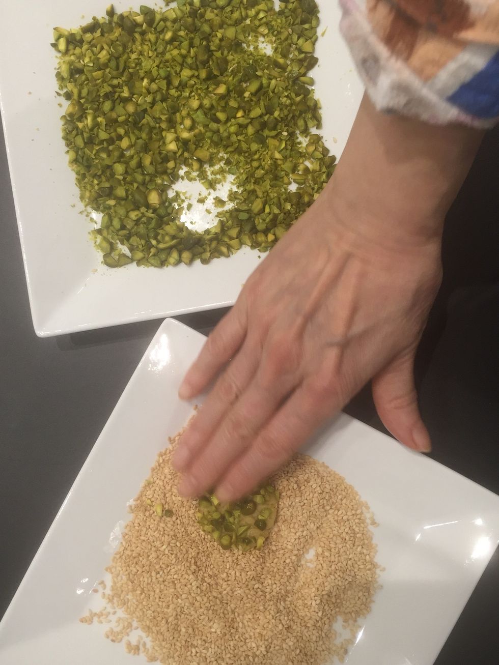 Add and fold the dry ingredients over the butter mixture. Finish with 2 tbsp of milk or as needed. Divide the dough into 3 parts, make cylinders, wrap and refrigerate at least 2 hrs.