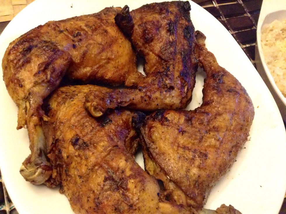 Cook the chicken on your outdoor grill. Baste and turn chicken every 15 minutes on low heat for chicken.