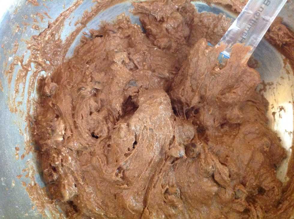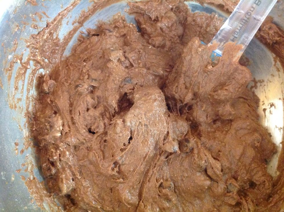 Pour maple syrup mixture into dry ingredients, stir and then add your chocolate. Pour into 8x8 pan and bake at 350° for 35 minutes
