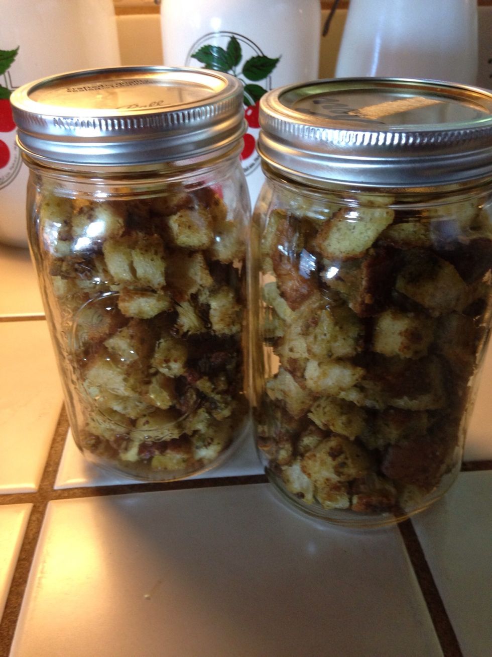 Let cool, and package in airtight container. (I like to use wide mouth mason jars). Great to use as soup or salad toppings.