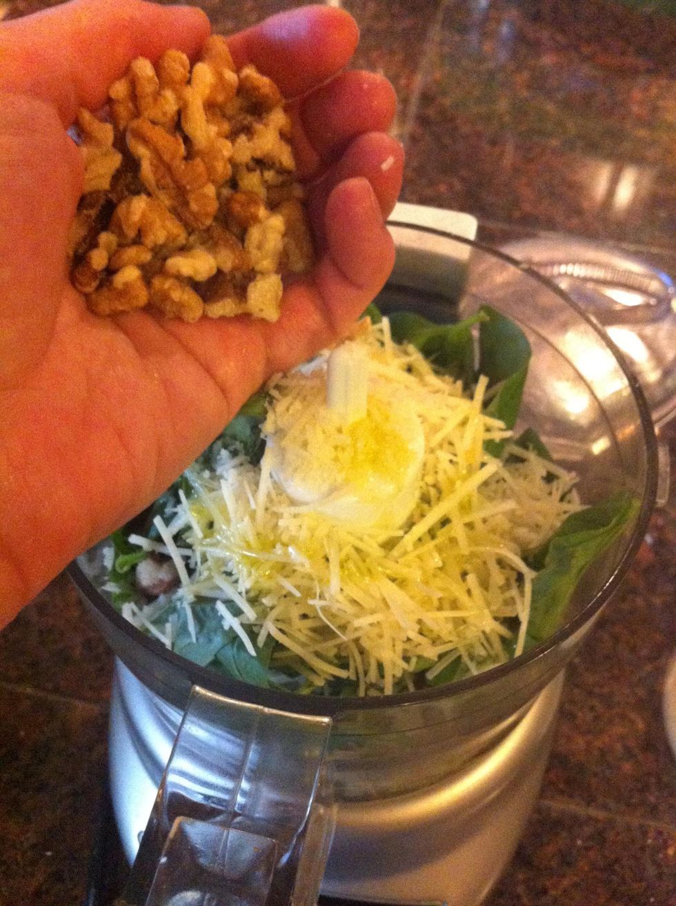 Add a handful of walnuts. I put another handful after this. Use pine nuts if you'd like.