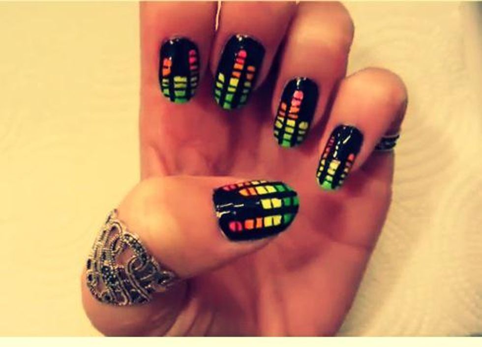 Start by, painting 4 lines on your nail, any color;) (I did 4 because it's easier),but you can do more (up to you) as how long your nail isππ
