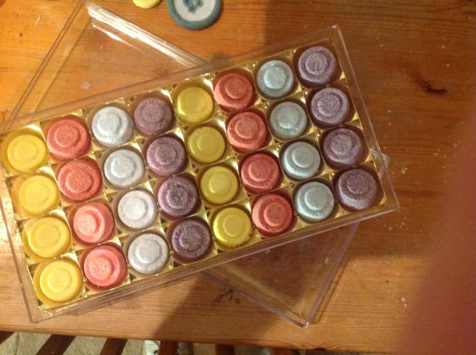 Push the mix still one at a time as hard as possible into your chosen moulds, them repeat the previous step followed by this one with each of the colours until you've used up all of your powders