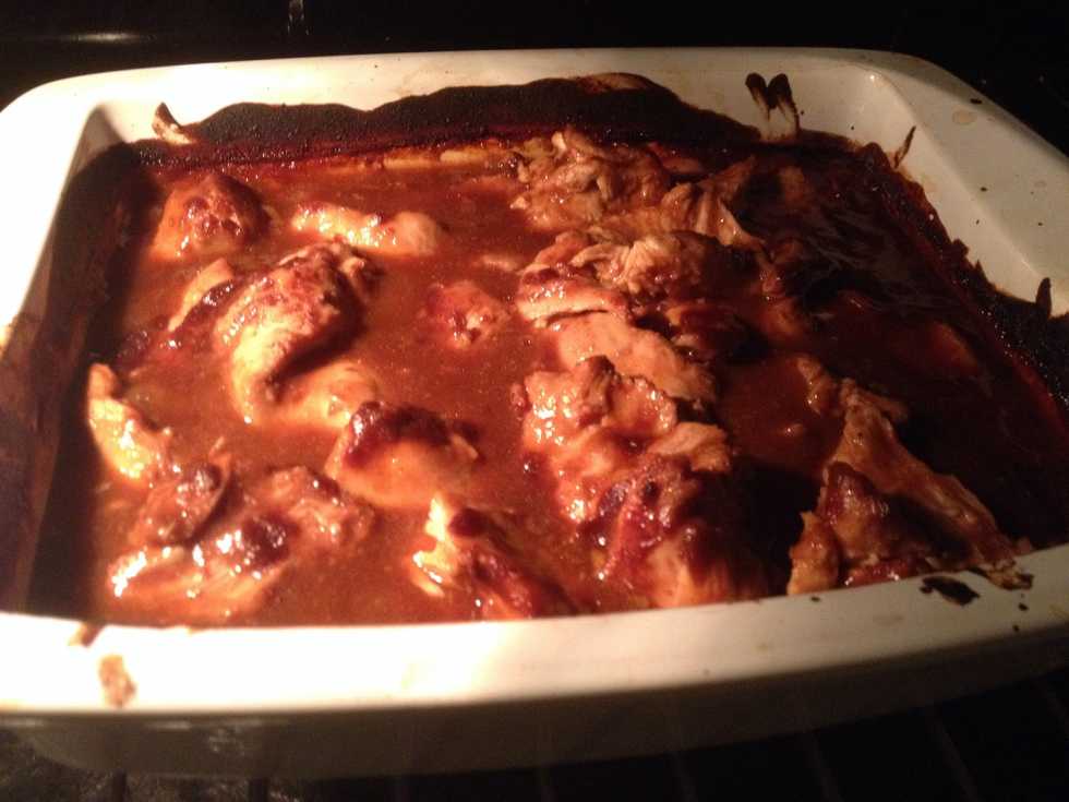Chicken 120 ml BBQ Sauce 60 ml soy sauce 60 ml red wine 60 ml honey Chili powder Mustard powder Onion powder Garlic powder Cumminseed