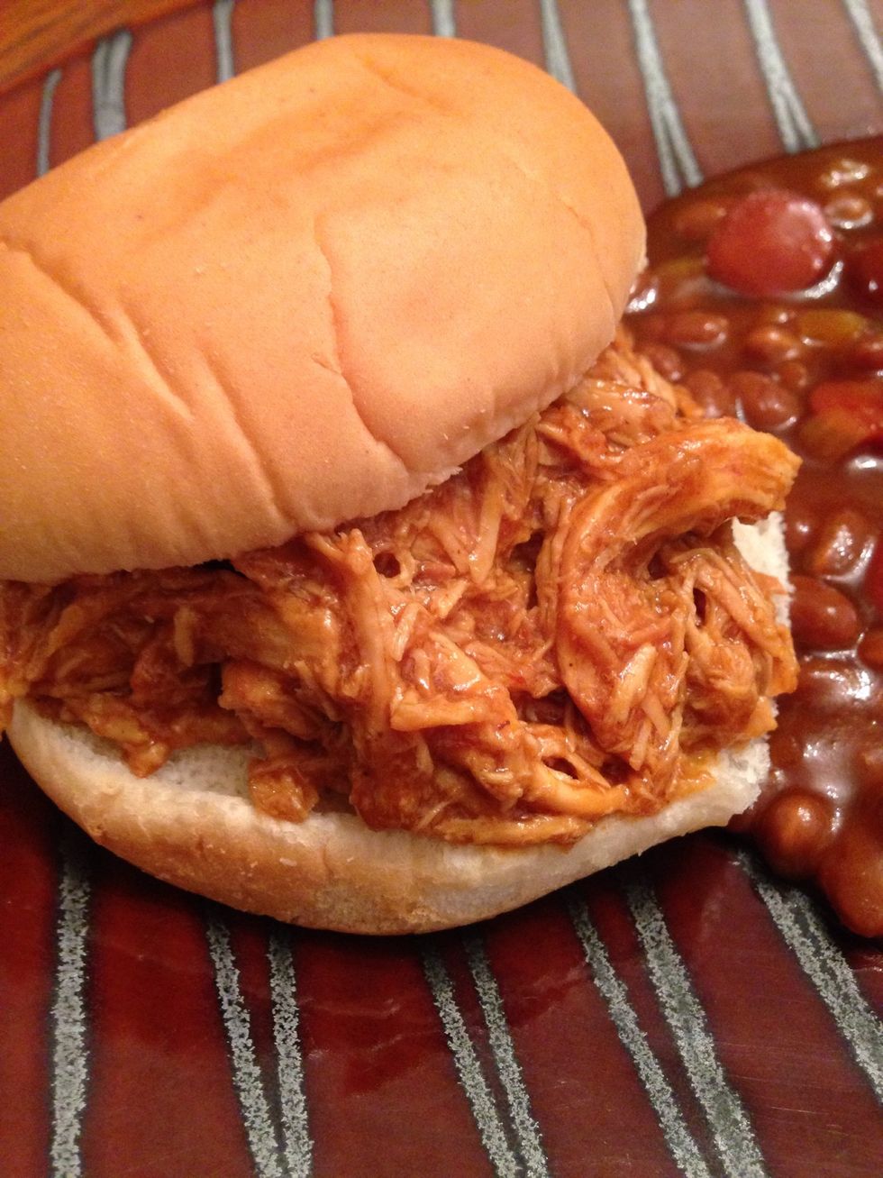 If you started this at 10 or so then by 3:30-4pm shut the crock pot off and remove the chicken to shred. You can also wait till it's finished but I like the chicken to marinate in the sauce!