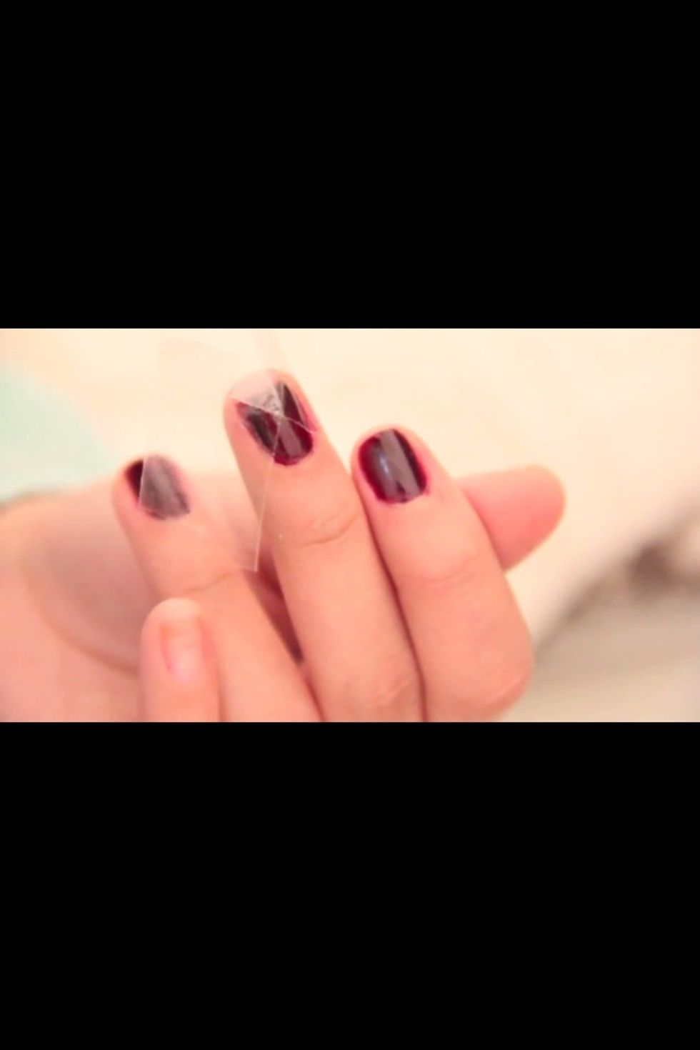 put the pueces of tape in your nail making a line, paint with other color and wait to dry.