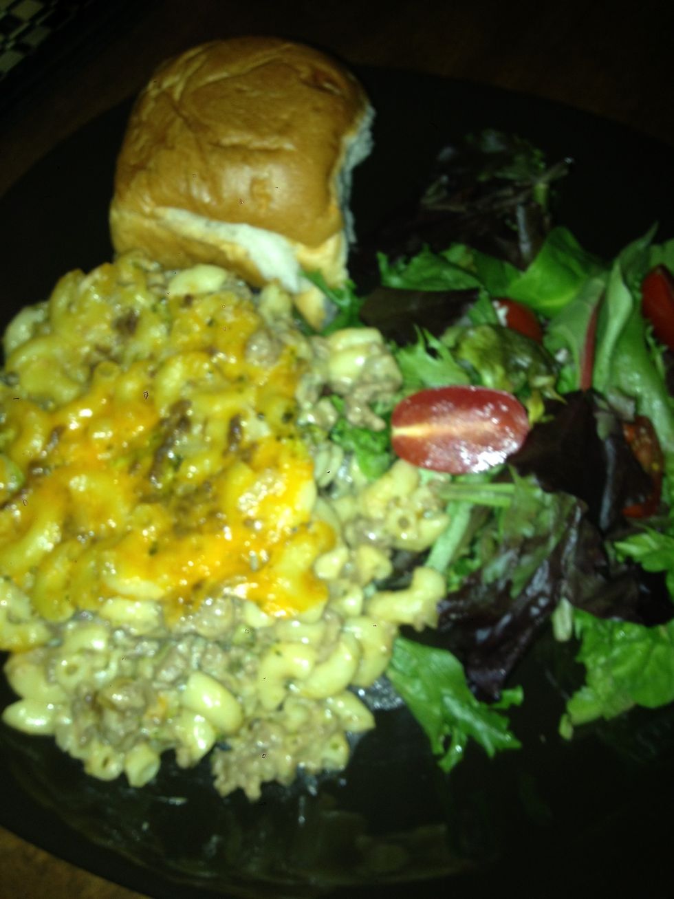 Now you've made all the components for the dish. Add the cooked macaroni to the large bowl with the beef& broccoli mixture. Pour cheese sauce over beef, broccoli and macaroni and mix well.