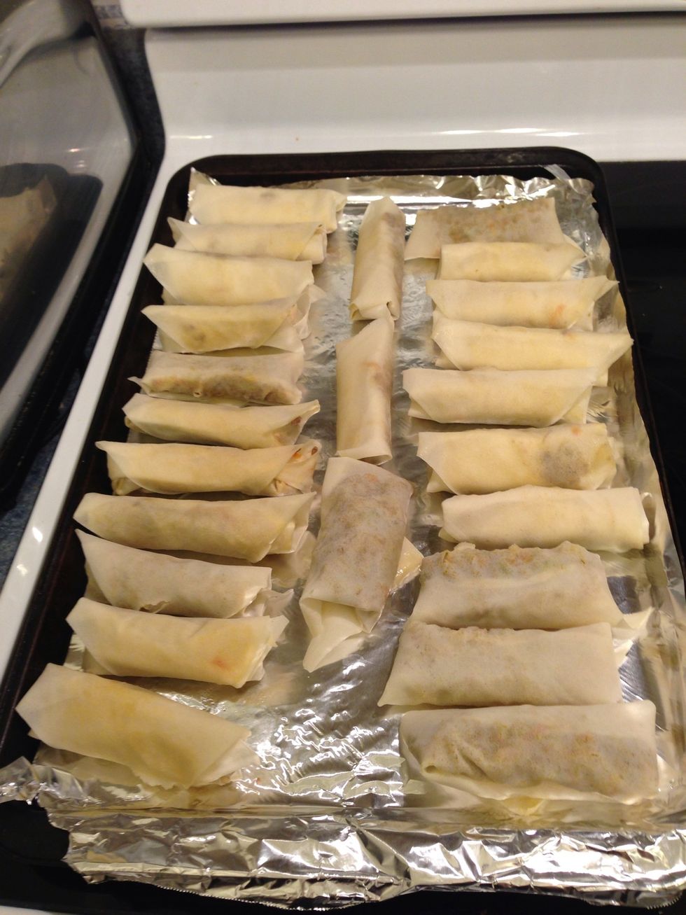 Now we fold a lot of spring rolls