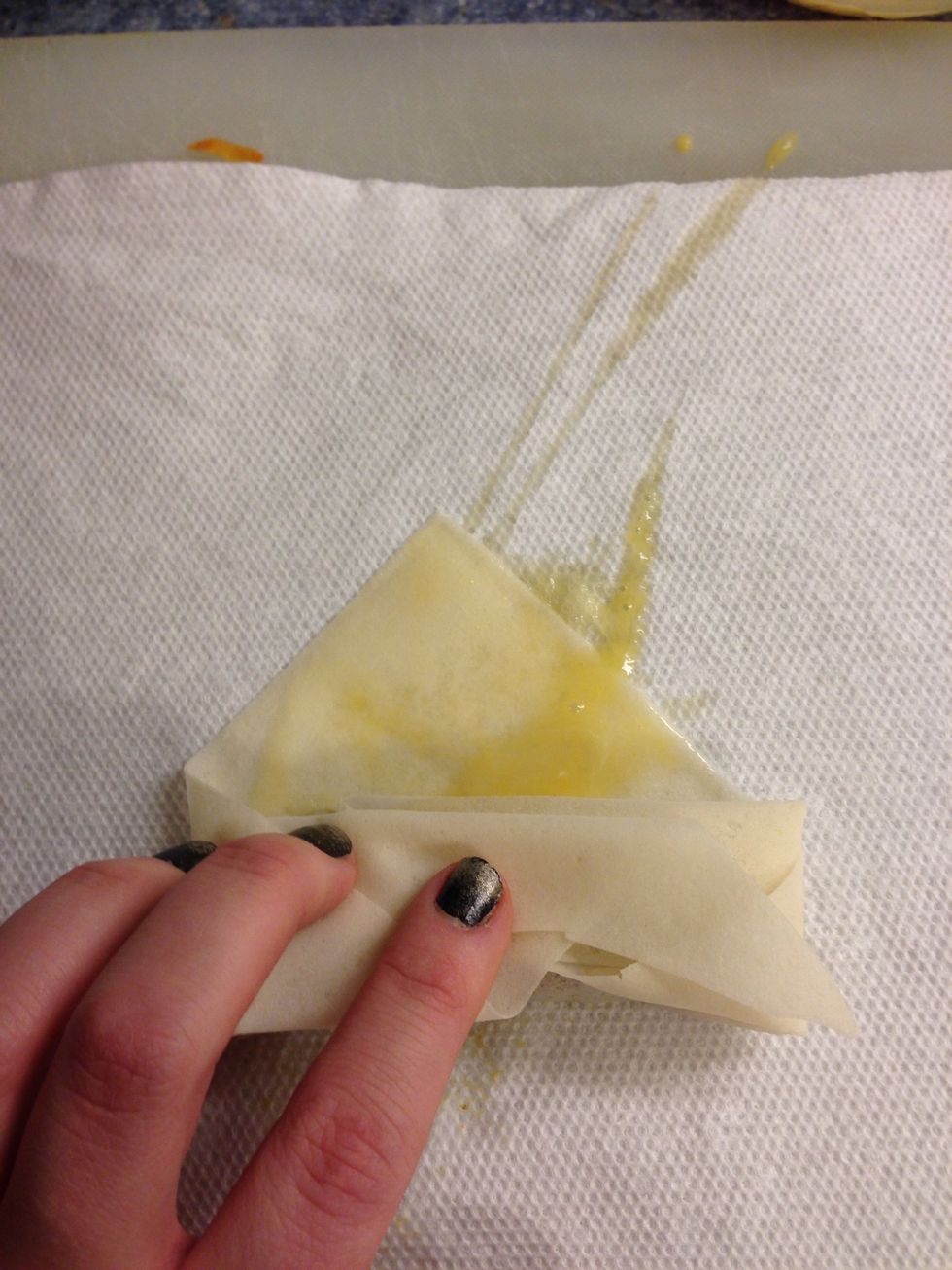 Whisk an egg in a bowl and brush it on to the wrapper. It's like a glue to keep it from unrolling.