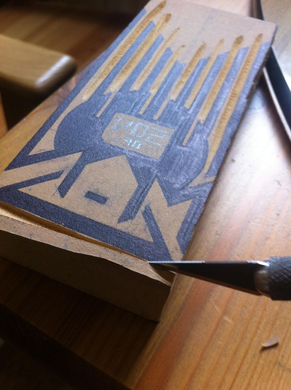 unearth your carving tool. you can buy these at any art supply store. I stole mine from a kindergardener. it was easy.