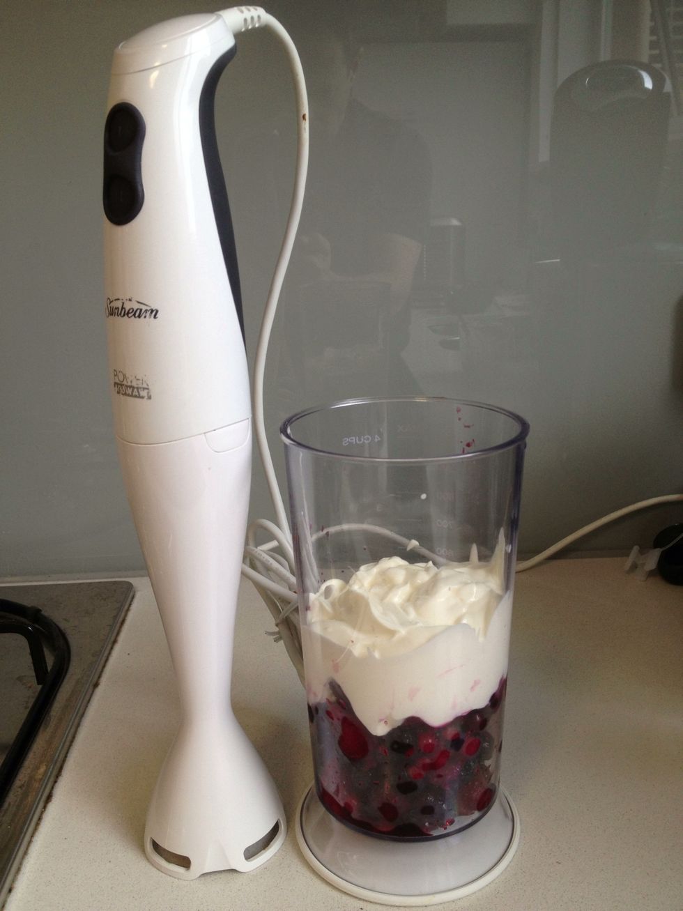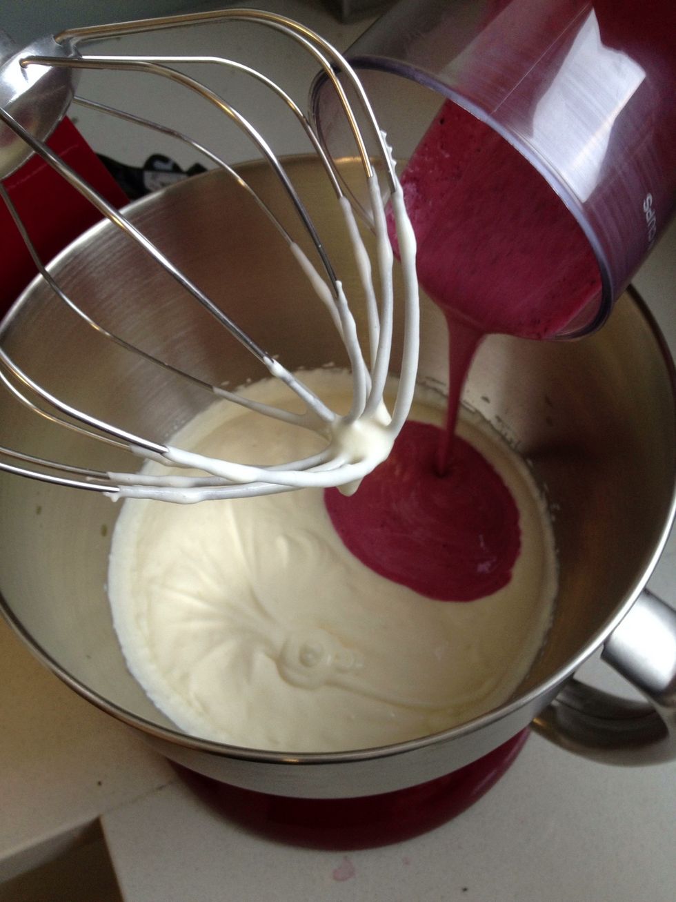Combine yoghurt and berry puree with cream and remaining ingredients and mix well gently.