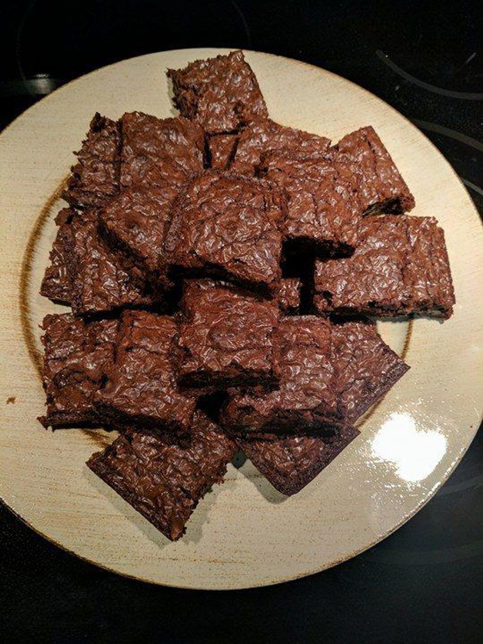 Once the brownies have cooled, grab a knife and cut the brownies into squares the size of your choice.