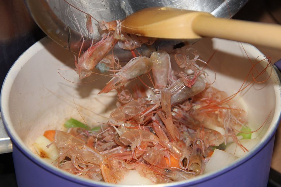 Clean your shrimps and keep only the shells. Use your shrimps for some other dish...