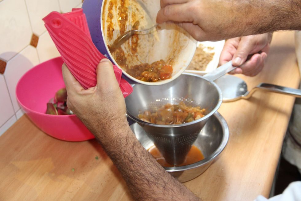 Cover the food with double the amount of cold water and simmer for 2 hours