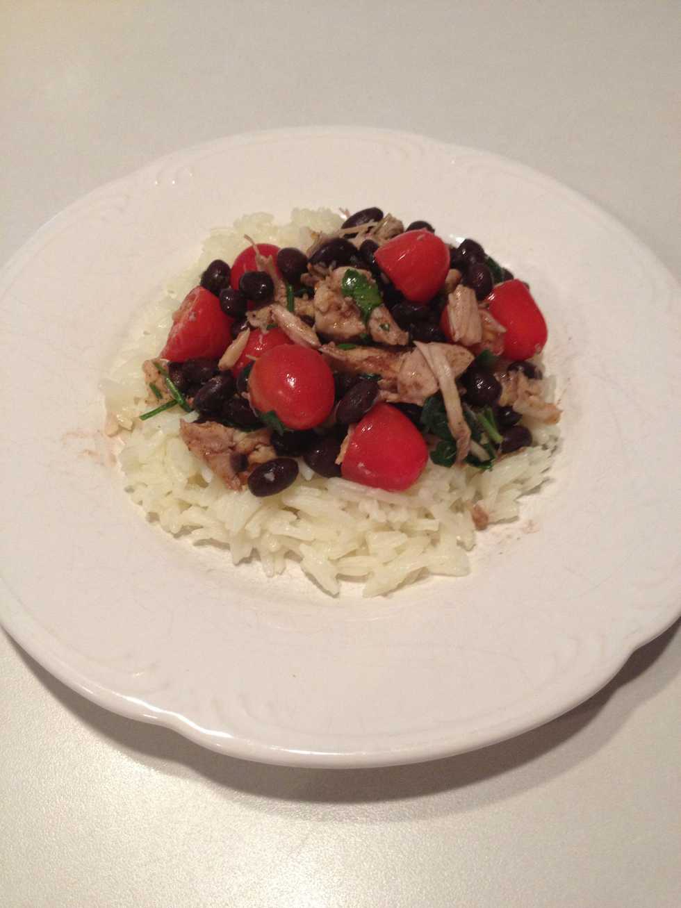 Add beans, tomatoes, and parsley. (Sorry about the blurry pic. I was working fast!)
