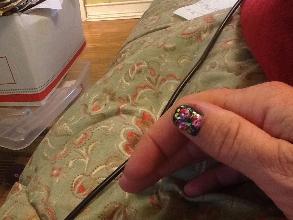 Add a couple of green dashes for detail. (Used a green nail art polish with skinny brush). The green had a hard time showing on top of the black. I re-did it a couple of times.