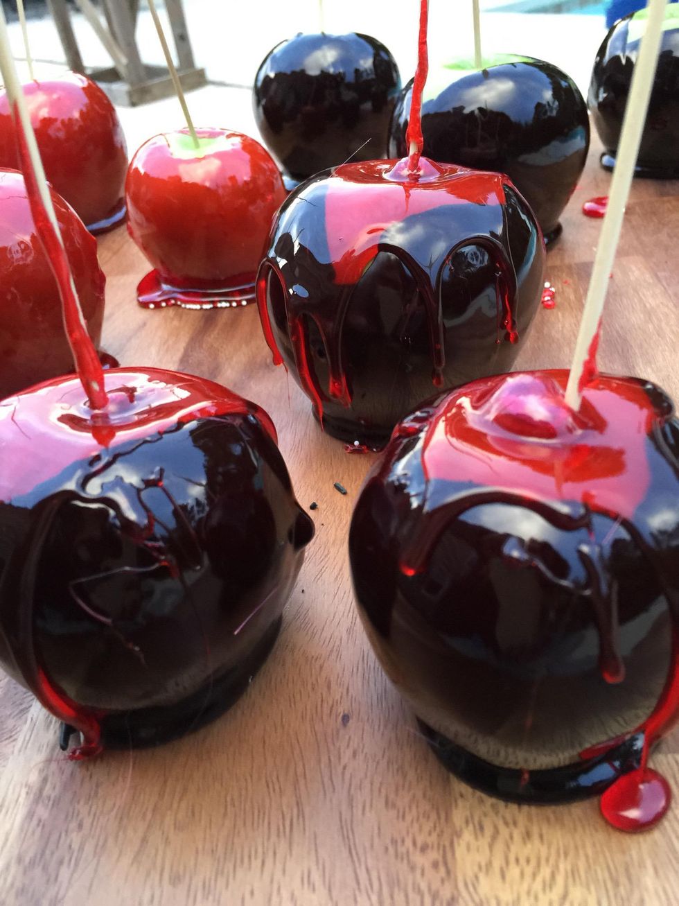Check out my guide, How to make Perfect Candy Apples. We are making the apples the exact same way except we are using BLACK GEL PASTE in place of red food coloring. This guide is more about the black.