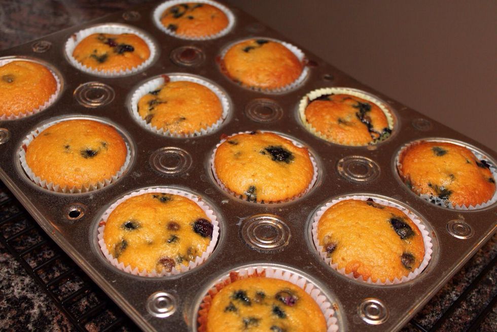 8.Add the extra blueberries to all of the single muffins to make sure they all have enough blueberries, gently press them into the batter