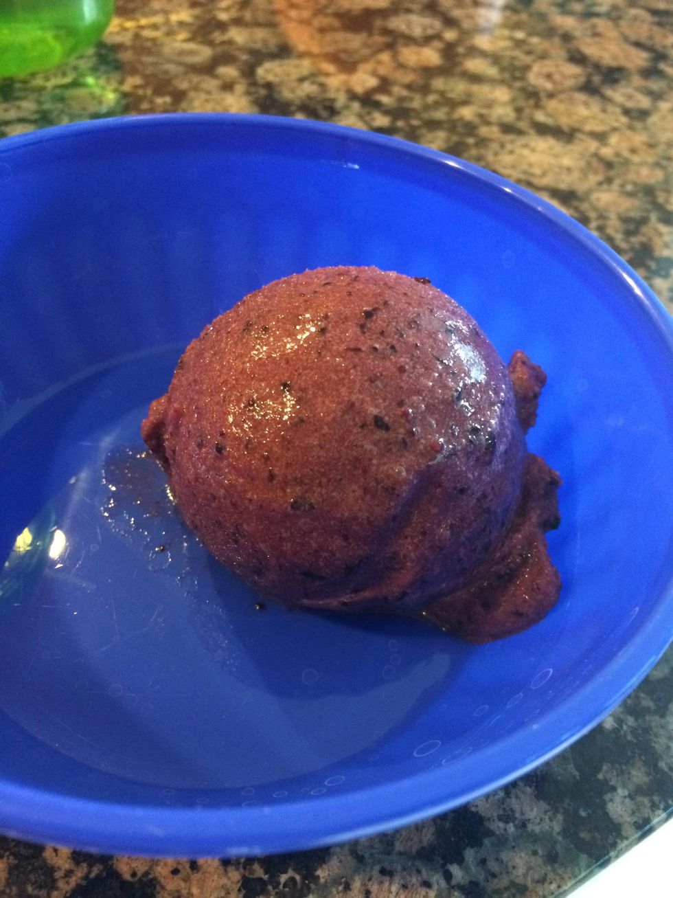 And it's finished. Look at that beautiful scoop of purple goodness! I have tried many dairy-free "ice cream" recipes and this is BY FAR the best one yet. It's normally hard to mask the coconut milk
