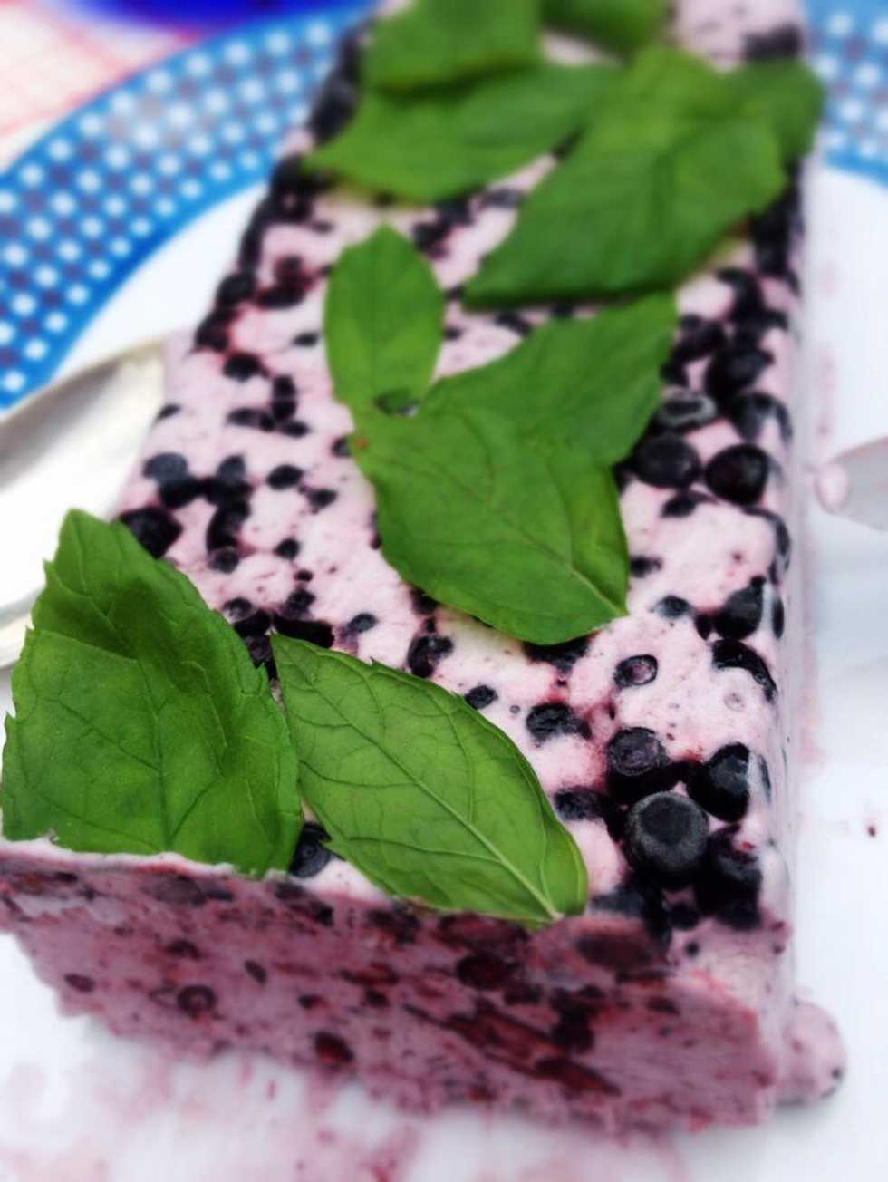 Then pour the parfait batter into the mold. Cover the mold with some more plastic foil. Freeze for at least 3 hours. If you keep it in longer, take it out well in advance before serving it.