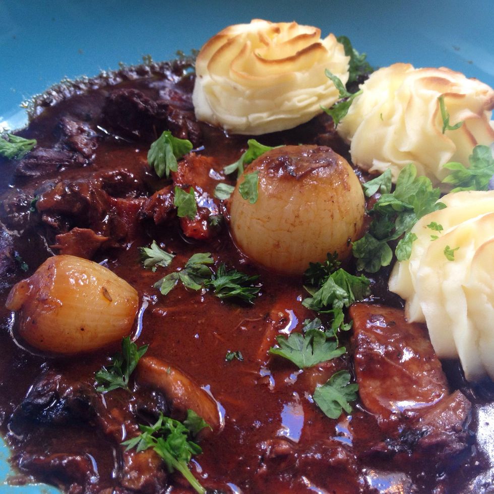 Fry the small onions and the mushrooms and add to the pot. The small onions need about 10-15 minutes at least in the pot. To the mushrooms I added some extra thyme.