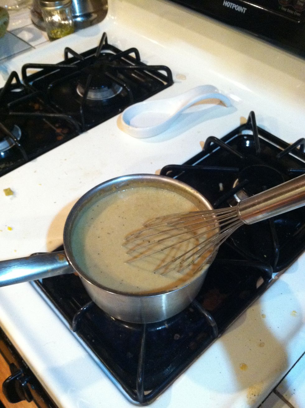 At this point you can cover and put your gravy in the fridge until its time to eat or continue if you're eating right away.