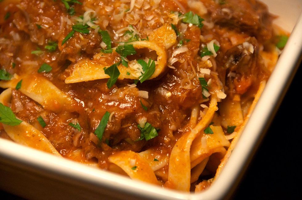 This recipe may seem like a lot but it's really not that hard. Season some meat, brown it, sauté some veggies, add some liquid, then slowly cook it. Toss with pasta and voila, Beef Shank Fettuccine!
