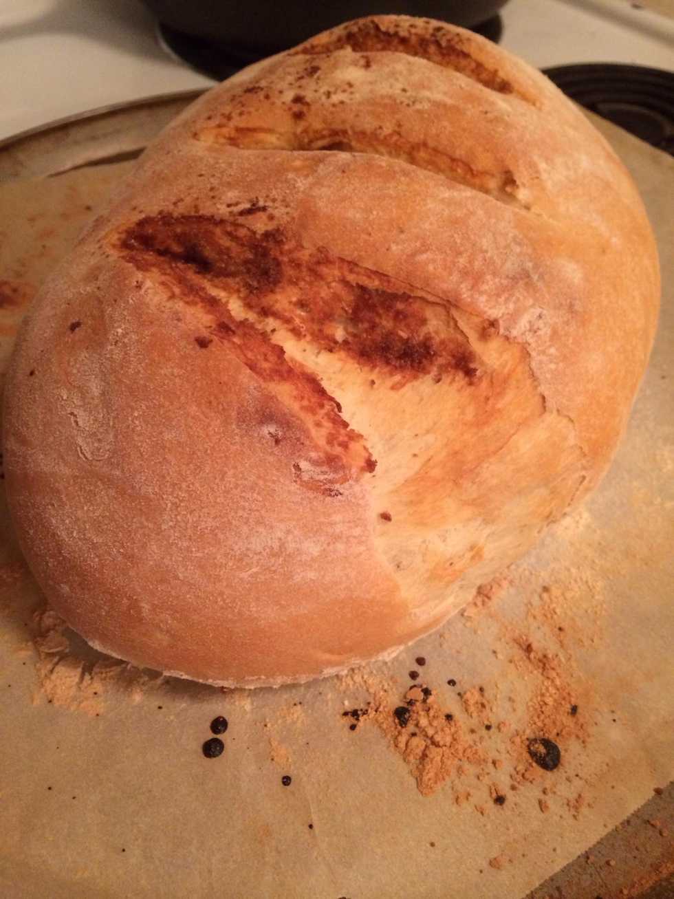 Artisan bread. 3.5 hrs to make. Costs ~$0.40/ loaf estimated.