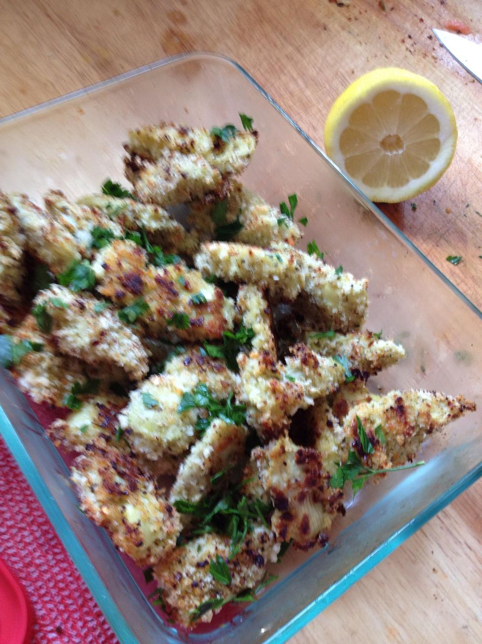 When all is toasty, top with some lemon juice and chopped parsley. Eat up