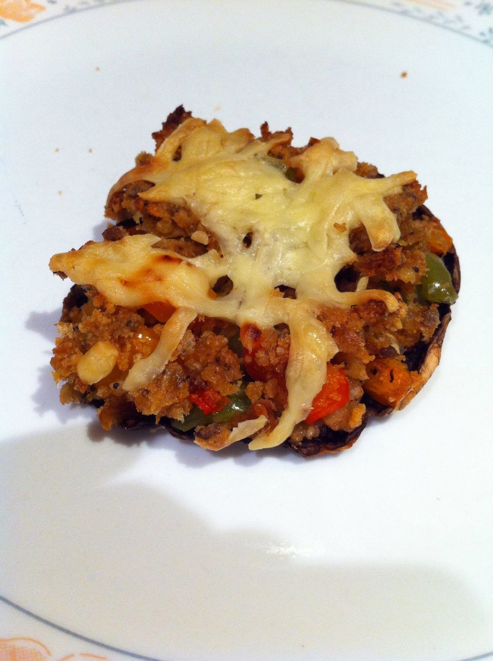 Finally... Sprinkle some grated cheese onto each mushroom.. Then place in the oven for 20 minutes at 200 degrees Celsius (or until the cheese is golden brown)