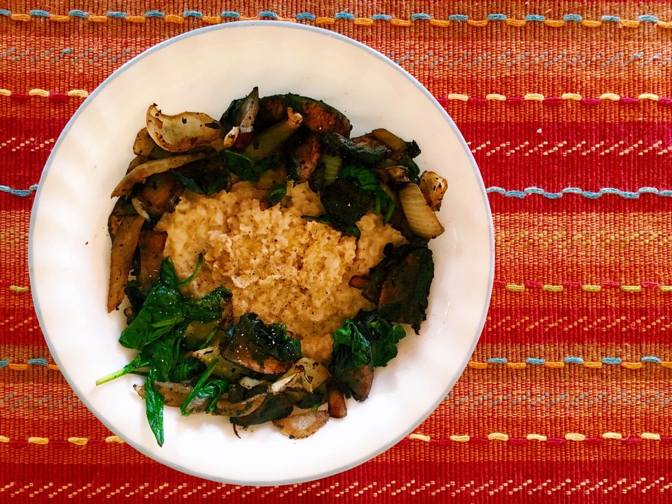 when you add them together it will make a savory healthier "risotto" but it will be oatmeal instead of risotto!!