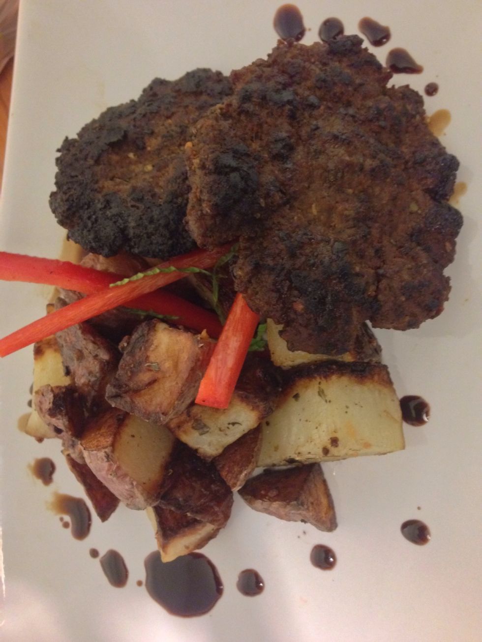 Place patties in freezer to allow the patties to hold their shape a little better. In the mean time I'm going to cook up some Roast Potatoes to eat with my sausage.