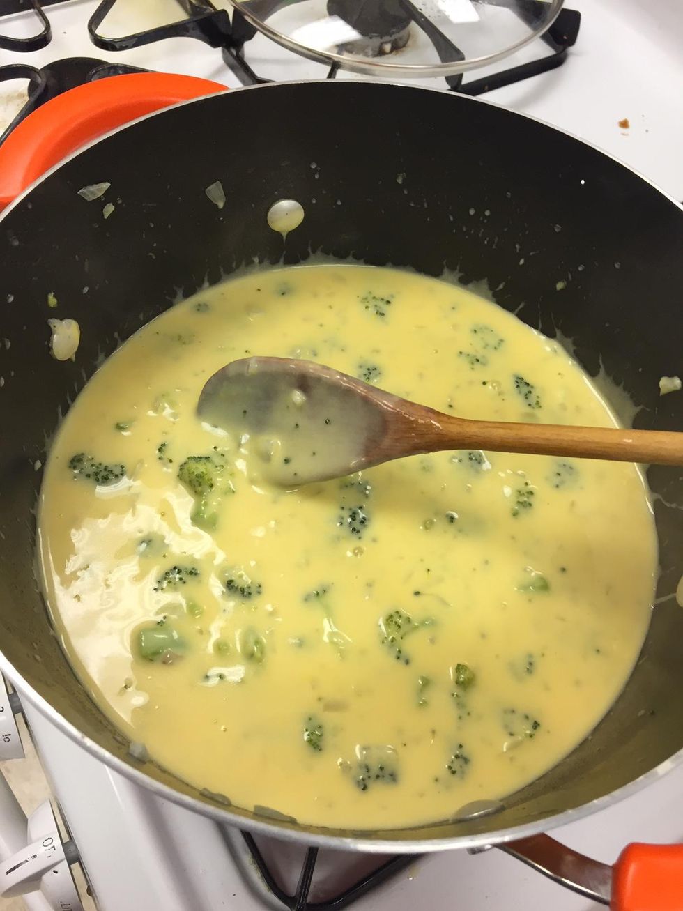 Cover in chicken broth. Simmer until broccoli is tender. 10-15 min