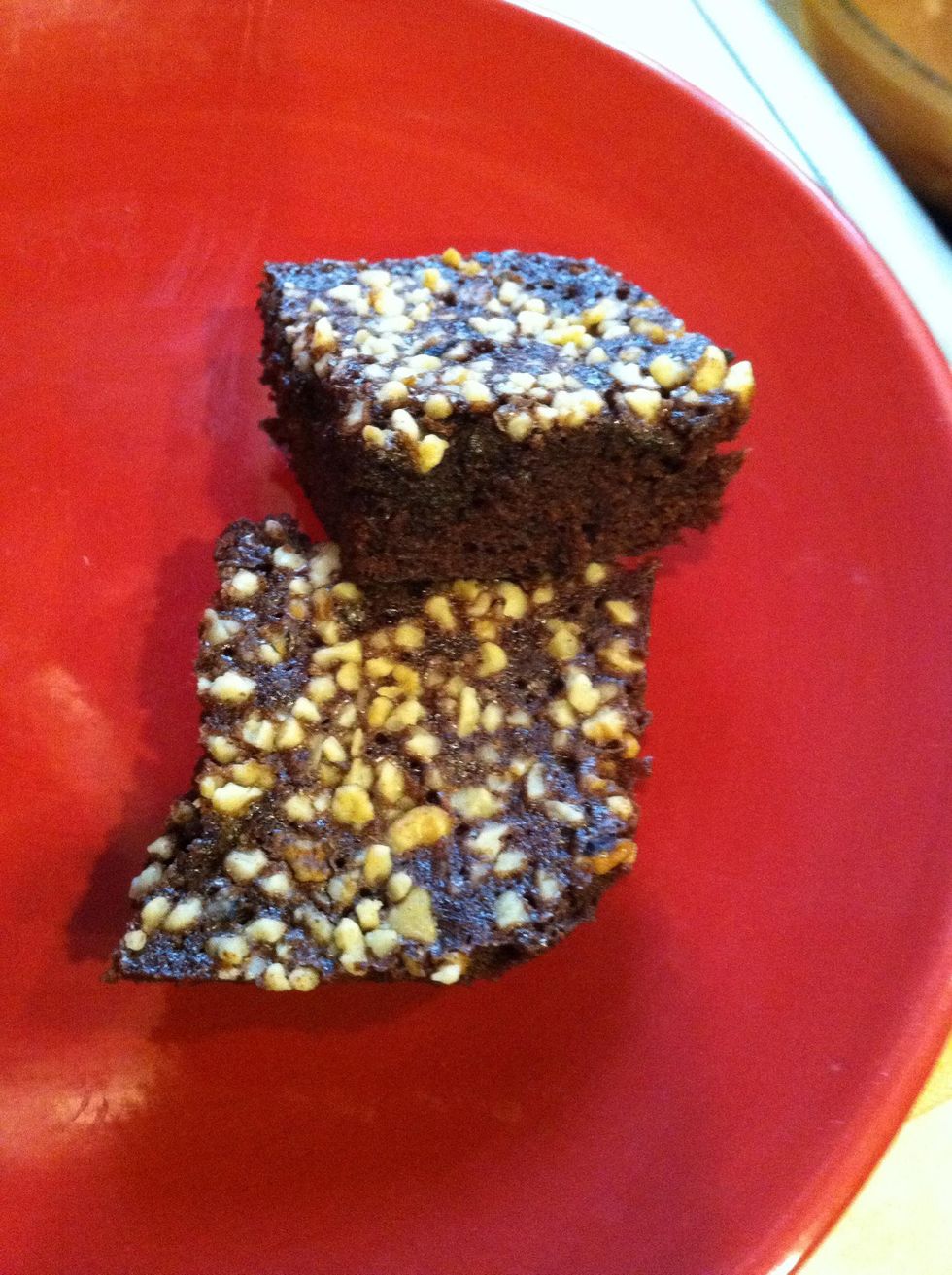 Add walnuts, and put in oven. Bake 20 mins or until toothpick comes out clean.
