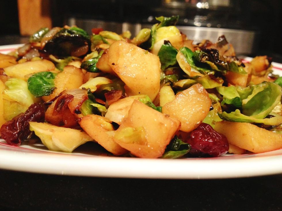 A great side dish or even main course with a nice piece of bread. Really easy and really tasty. Feel free to use a crisp pear instead of an apple if that's more your thing.