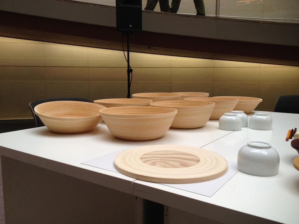 コイル状のブナ材をお茶碗を使い少しづつずらしていきます。お茶碗の使い方もエッジの部分、腹の部分、力のいれ具合、色々なテクニックがあり、確かに使いやすかったです。