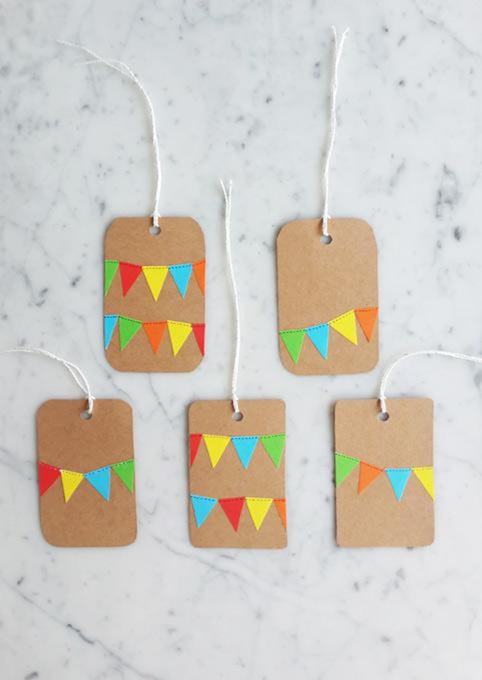 6. Add the finishing touch- with a felt tip black pen, draw a dashed line along the edge of the bunting flags.