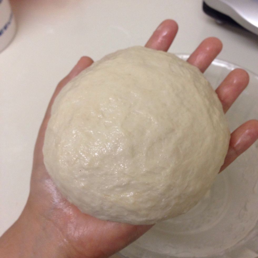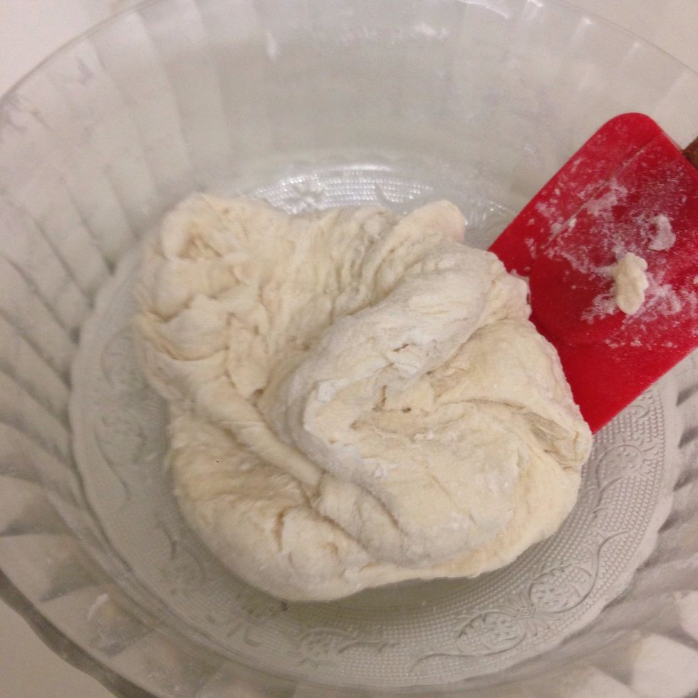 Mix flour, water, salt and olive oil. You may end up need more or less water. I don't really use measurement tools.