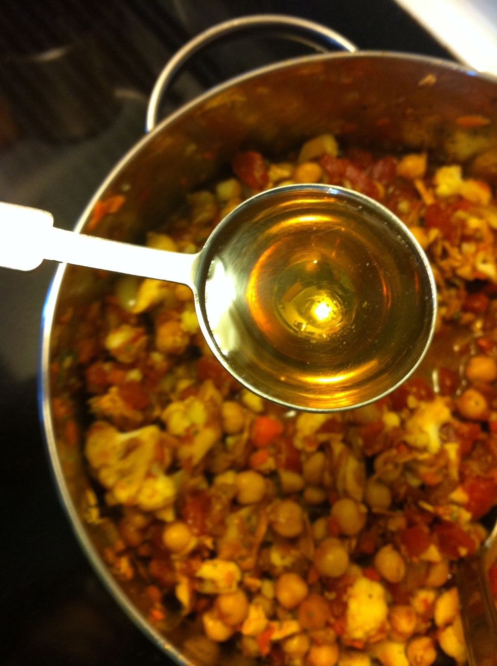 Heat over medium heat: Oil, cauliflower, carrot until cooked through