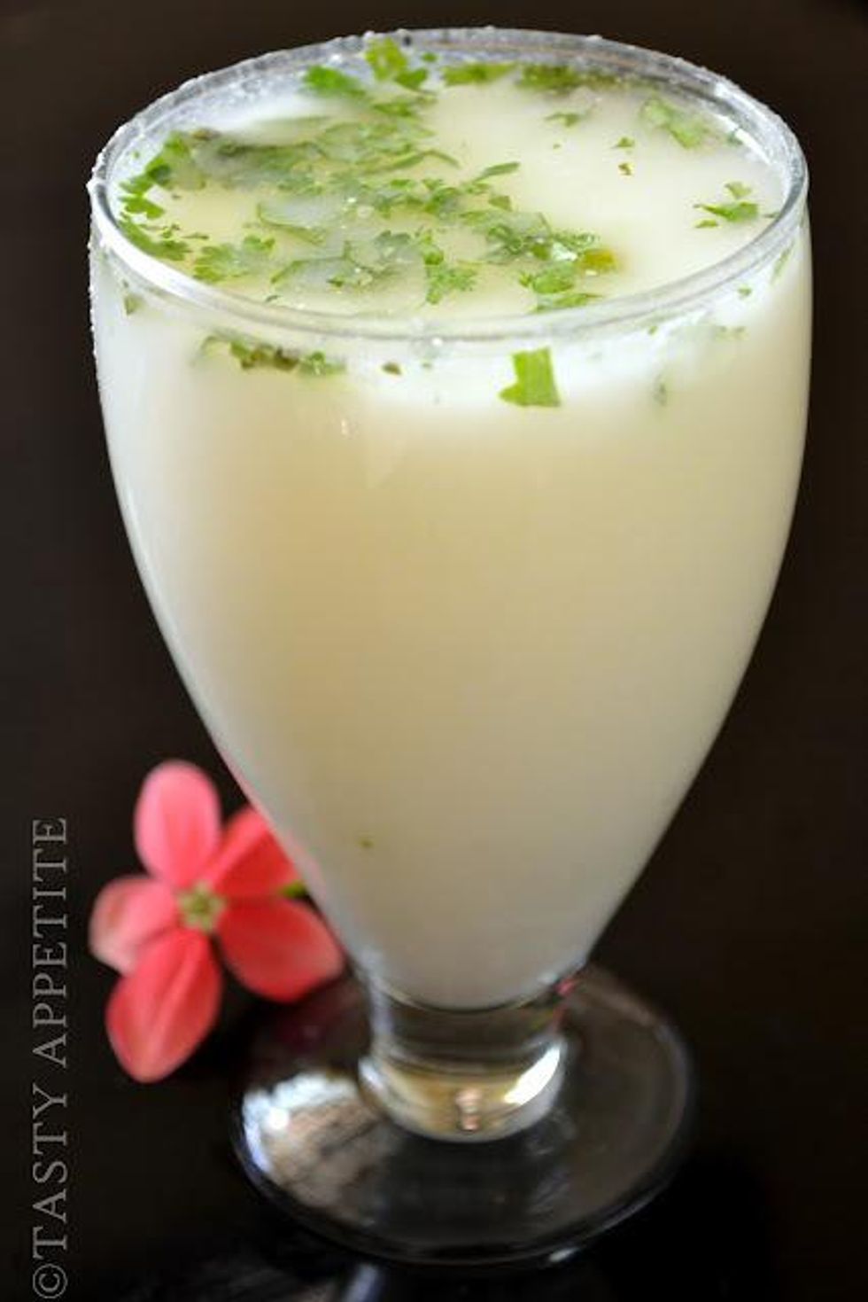 First take some curdNow squeeze the lemon into the bowlAnd pour the salt into the bowlAnd now poor the waterAnd now for some garnishAnd now it's ready