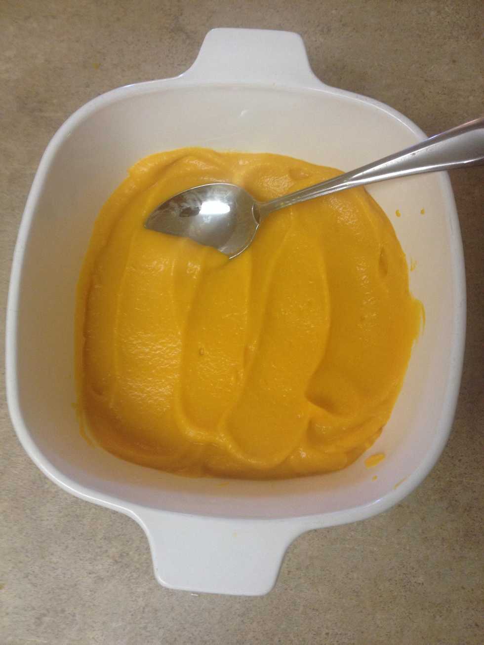 Scoop out the meat of the butternut squash and put into a bowl for the kitchen aid.