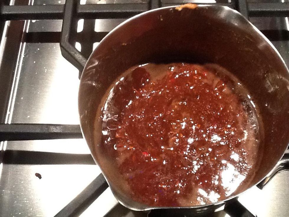 Turn off stove and let the mixture cool down a little. Then put onto a cookie sheet.