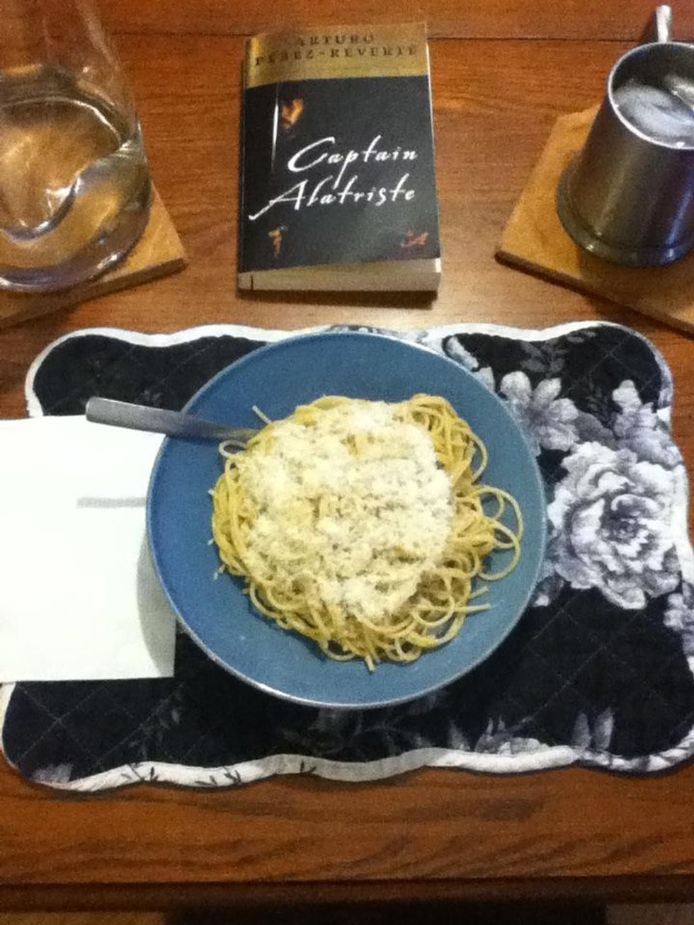 Add lots of salt, more than you think you need. The difference between good pasta and cardboard pasta is just this. Then cook your spaghetti according to the package directions, BUT...