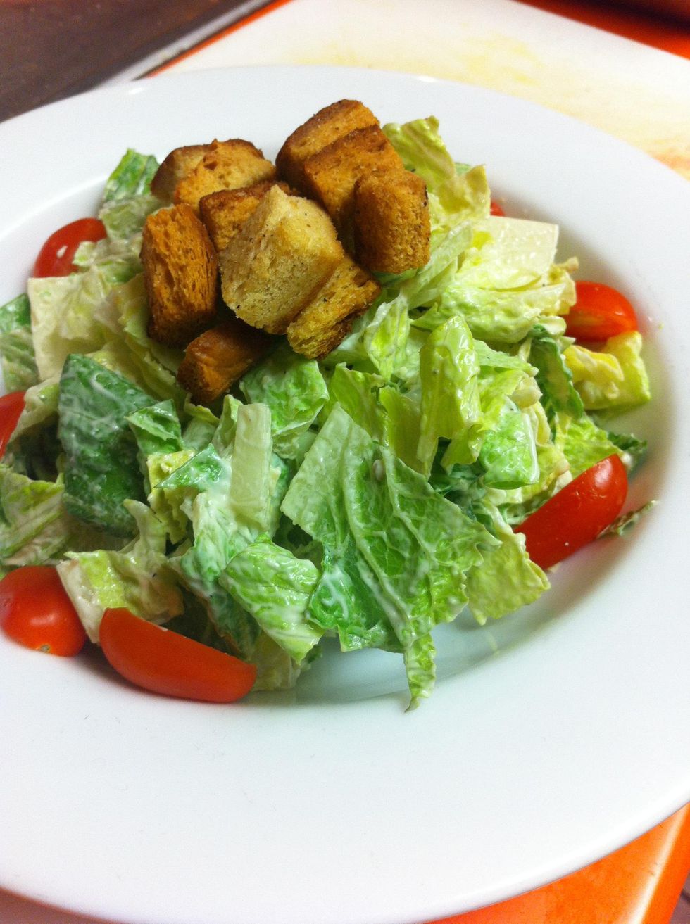 In mixing bowl, place Romaine Heart (rinsed, dried and chopped)