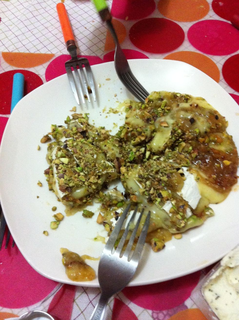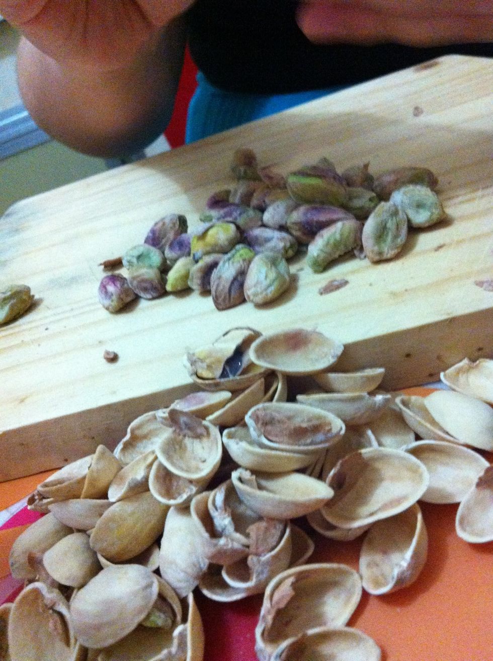 Add the pistachio... And more honey... Honey is like the glue and it will keep the pistachio together