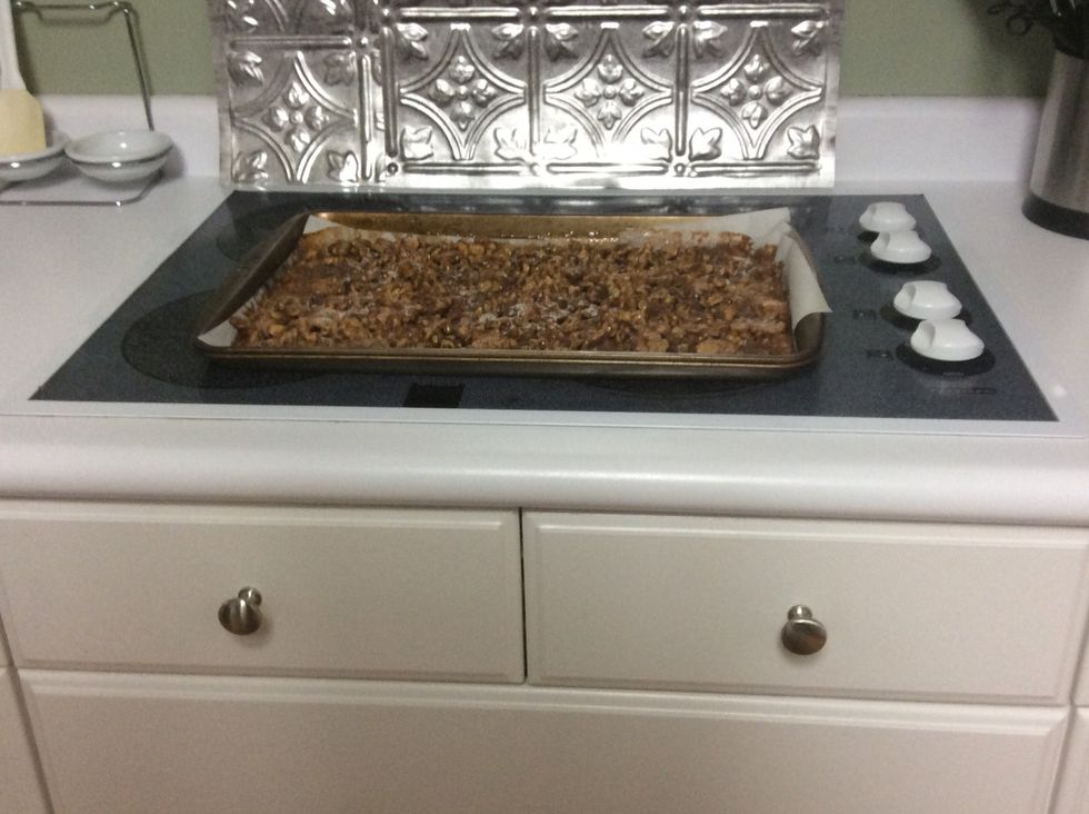 Pour the remaining 1 cup of sugar over top of the walnuts, then let the walnuts cool down