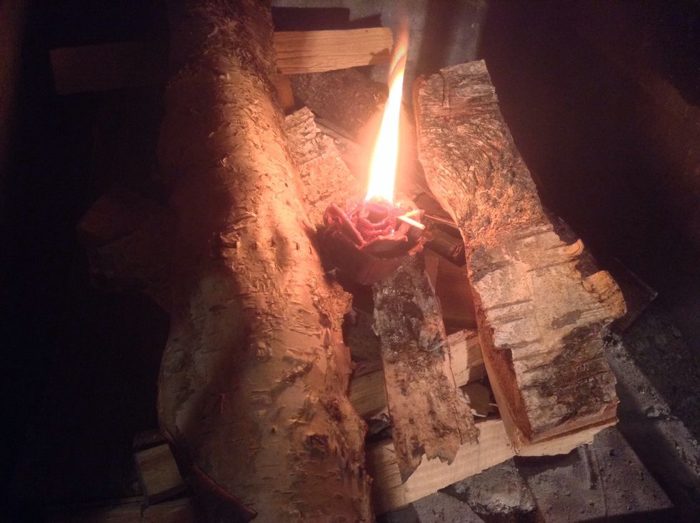 One rose is enough to light a fire easily. Just insert a lit match between the petals of the rose.