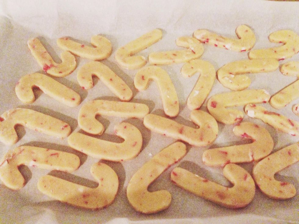 Roll 1/4 inch thick, use candy cane shaped cookie cutter.